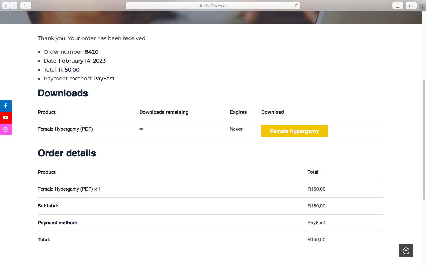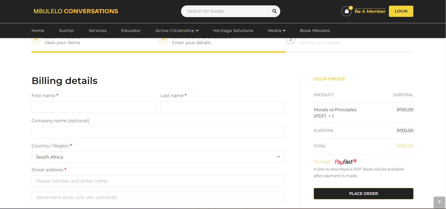 Order links takes you to payfast page, select your preferred payment method and follow the instructions